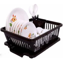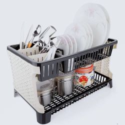 Kitchen Organiser Plastic Kitchen Rack (Black & Whi...