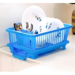 Plastic Dish Drainer and Drying Rack for Kitchen Blue