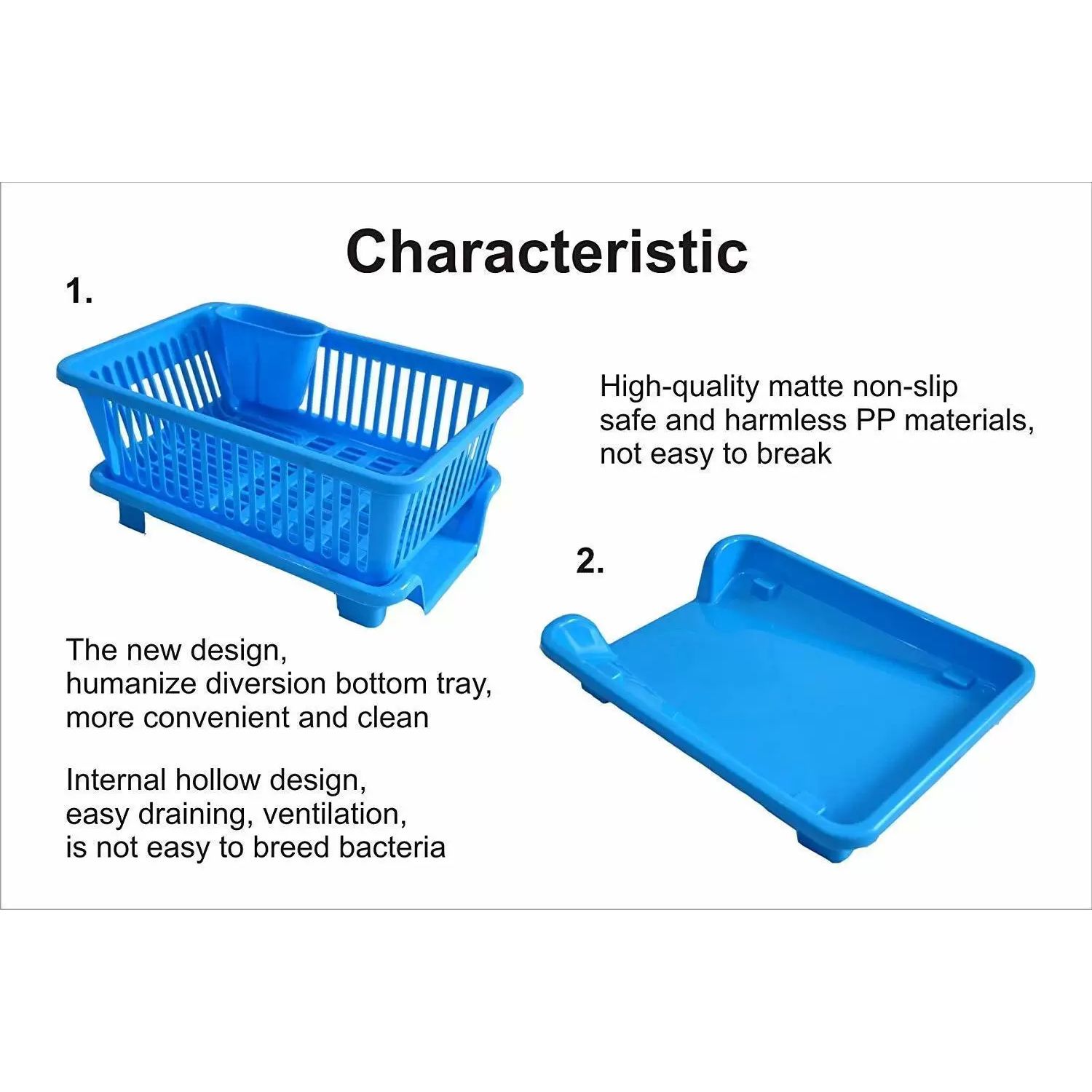 Used to hold plate, bowl, knife, fork, sponge or any other gadget in the kitchen. It can hold many dishes. Easy to ventilate and not easy to breed bacteria.Ideal for draining and drying dishes efficiently.It is ideal accessory for you to keep kitchen clean.Removable draining tray allows easy removal of excess water.