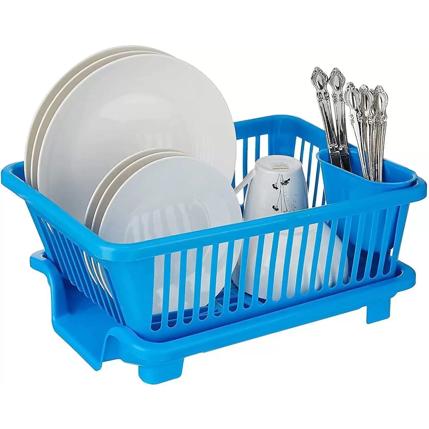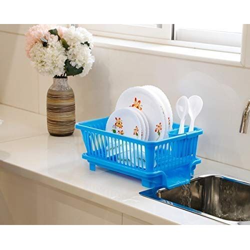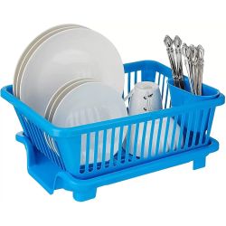 Plastic Dish Drainer and Drying Rack for Kitchen Blue