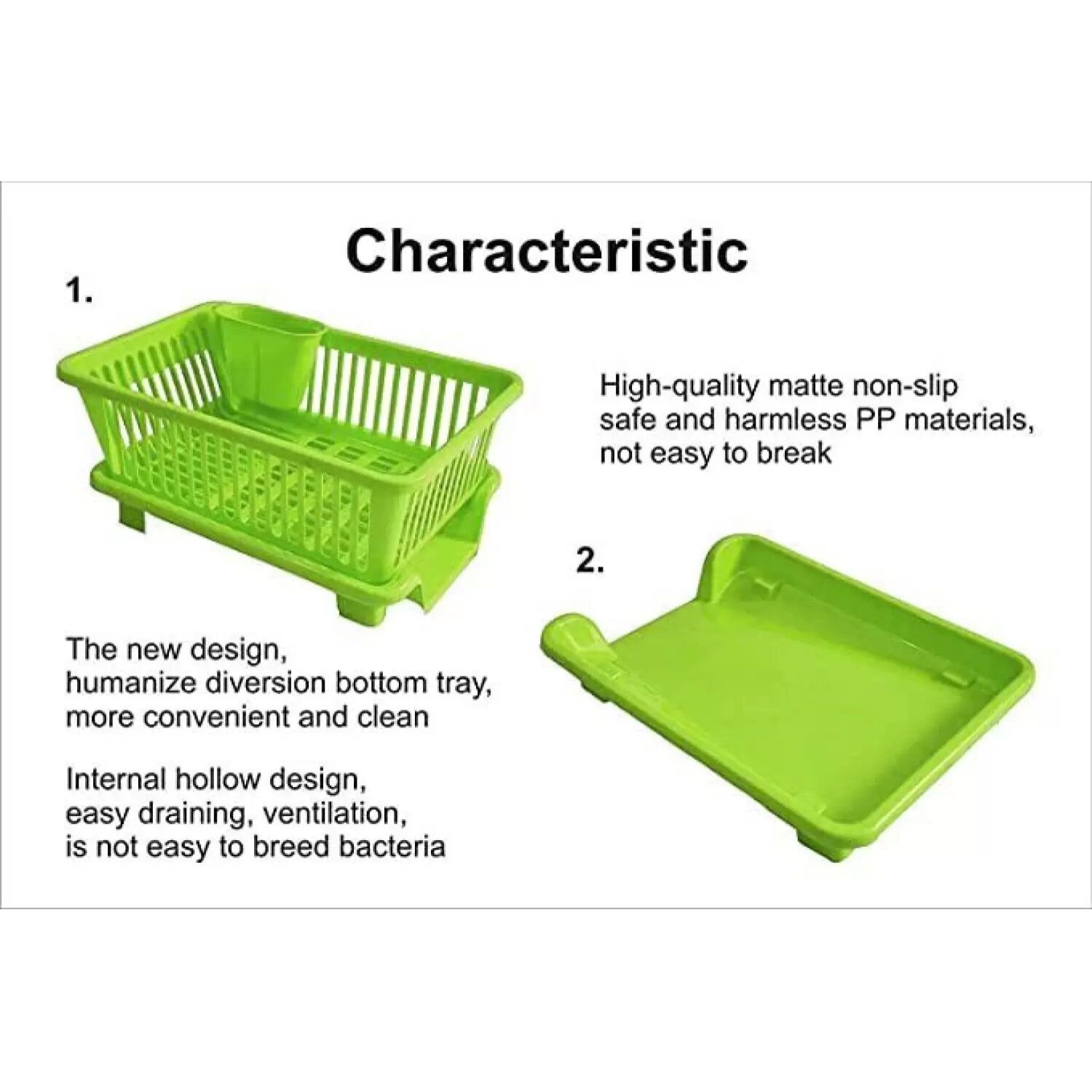- 3 in 1 Large Sink Set Dish Rack Drainer Drying Rack Washing Basket With Tray And Spoon Holder For Kitchen, Plastic Dish Drainer Dish Drainer, Dish Rack Organizers, Utensils Tools Cutery Dish Drainer Kitchen Rack Drainer Rack WITH TRAY ( GREEN )