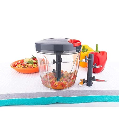 Chop large pieces of fruit, vegetables, boneless meats, herbs, nuts, and even ice by hand with this handy chopper | Easy to maintain | Top Quality Function & Design of chopping blades are made of surgical stainless steel that won’t bend or rust and are designed for fast and even chopping. Equipped with an anti-skid base, handle, our bowl has the largest capacity on the market. The chopper features an oversized crank making it safer, more durable, and easier to control for desired results. Not just a food chopper,