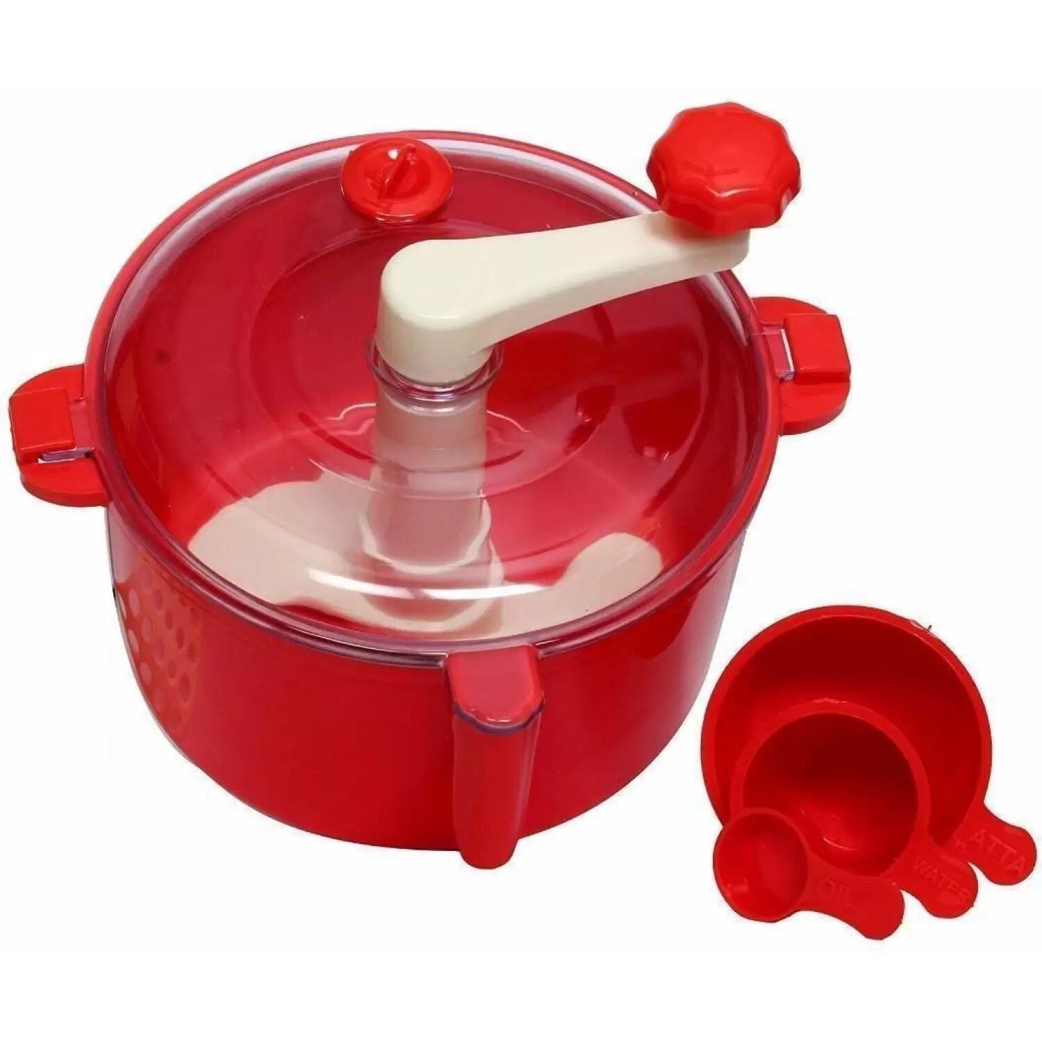 People love to eat chapatis and include it in their diet, but the thought of kneading the dough most of the time brings it down in the preference list. Bring home this Kitchen Plastic Detachable Dough Maker that can take care of all your kneading requirements without creating a mess in your kitchen. Dough Maker Set is time-saving kitchen equipment set & consists of three measuring cups, one bowl, a handle, a lid along with a lid-hole cap to knead atta or maida in minutes without making your hands gooey and dirty.