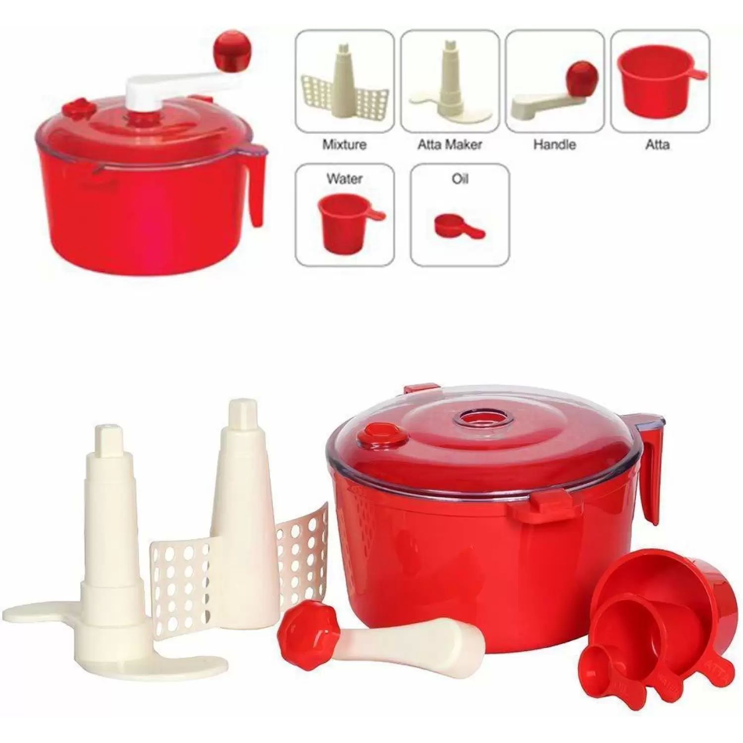 Dough/Atta Maker Machine with Measuring Cups Must for Chapati, Paratha, Tandoori Making Plastic Vertical Dough Maker (Red)