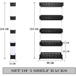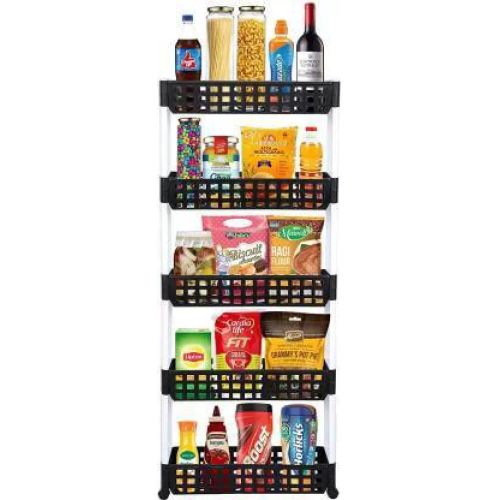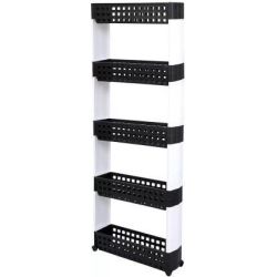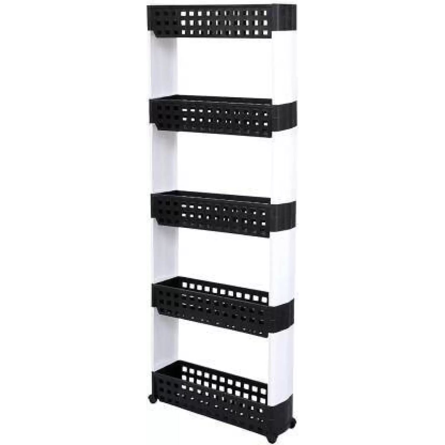 5 Layer Slim Space Saving Multipurpose Utility Storage Shelf with Wheels_5BW