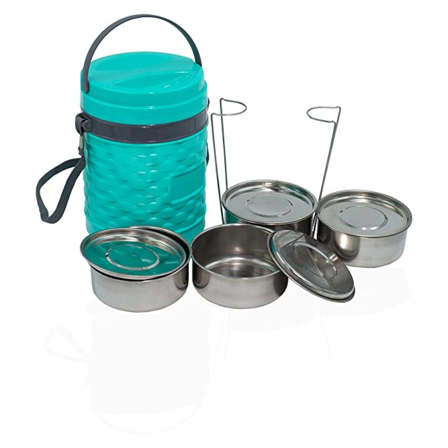 Crazy 4 Container Lunch Box Double Wall Insulated Stainless Steel Outer Plastic Tiffin Box ( Green - Crazy 4)