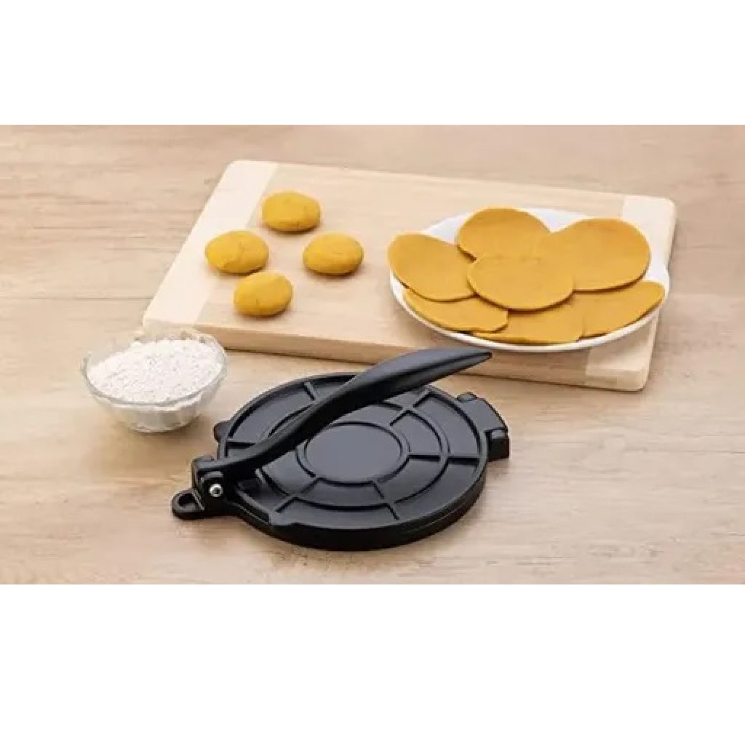 - Useful for flatning or pressing puri poori in kitchen.Heavy presser machine ,nearly 1kg with easy operation