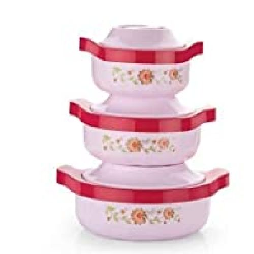 Casserole Set of 3 Premium Casserole Big Size Microwave Safe 3 Pcs Set Floral Print Serve Casserole Set- 800ML,1500 ML and 2500ML