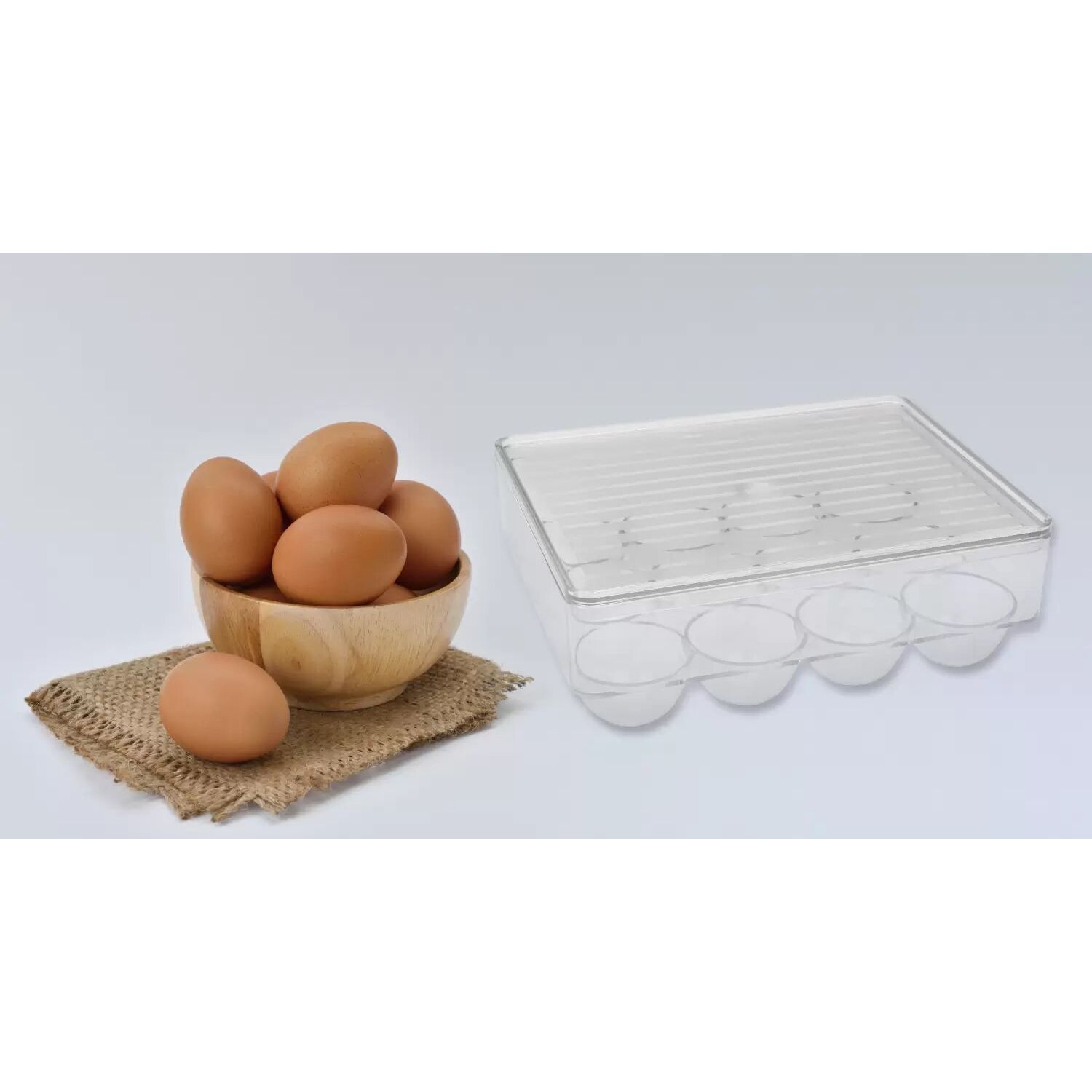 Kitchen Glass Egg Holder BPA Free Fridge Organizer 12 Egg Tray & Plastic Egg Containe