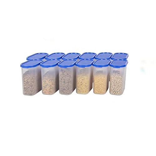 Oval Shape Kitchen Storage Containers/Airtight Container/Kitchen Container - 1500 ml Plastic Grocery Container (Pack of 12, Blue)