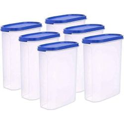 Modular Air Tight Food Storage Kitchen Containers With Plain Lids - 2500 ml Plastic Utility Container (Pack of 6, Blue)
