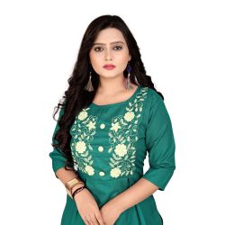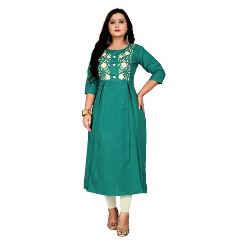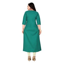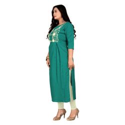 Women Embroidered Cotton Blend Straight Kurta (Light Green)
