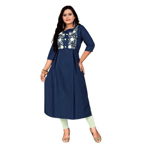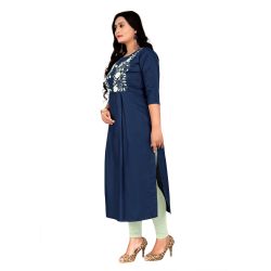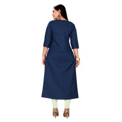 Women Embroidered Cotton Blend Straight Kurta (Dark Blue)
