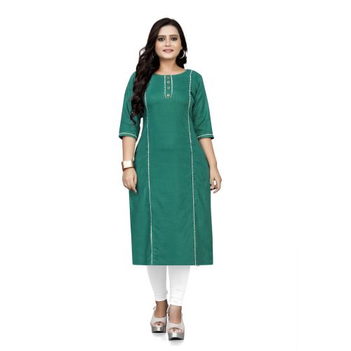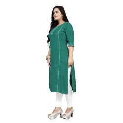 Women Self Design Cotton Blend Straight Kurta (Light Green)