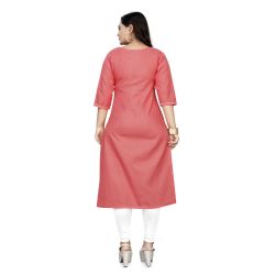 Women Self Design Cotton Blend Straight Kurta (Orange)