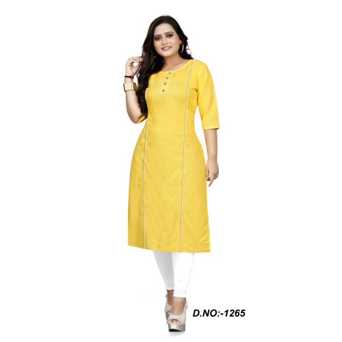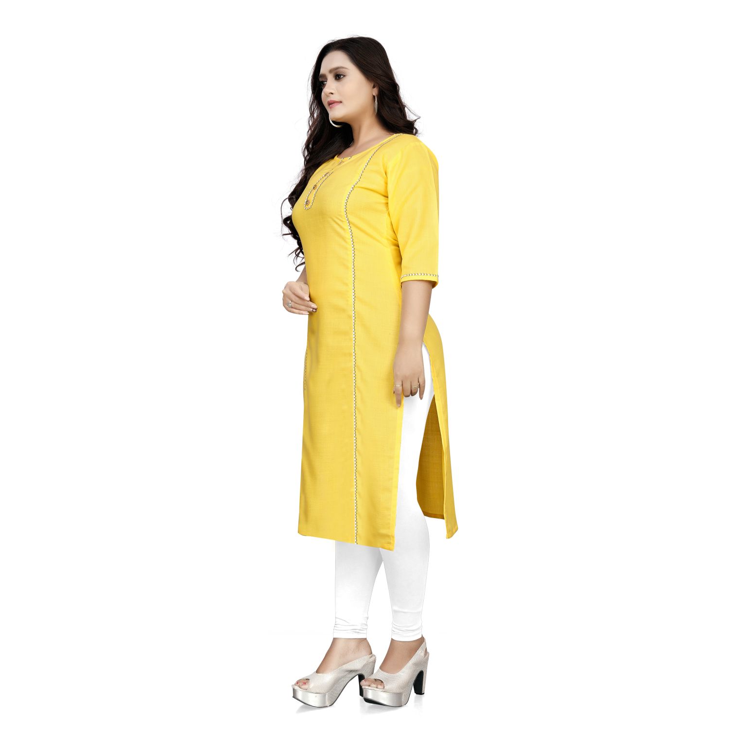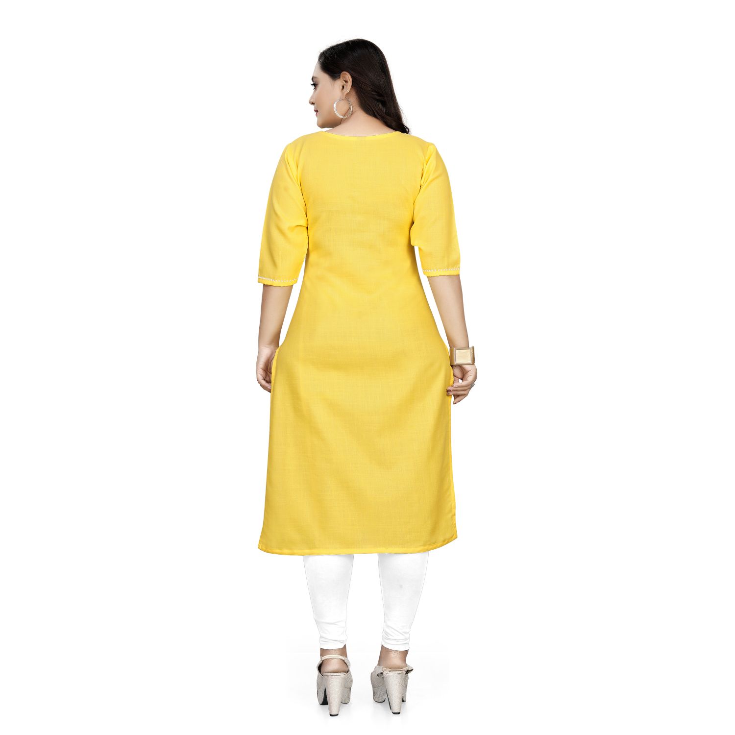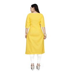 Women Self Design Cotton Blend Straight Kurta (Yellow)